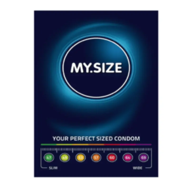 MY.SIZE es la marca de preservativos, que se encuentra disponible en 7 tallas diferentes desde un ancho de 47mm hasta 69mm.