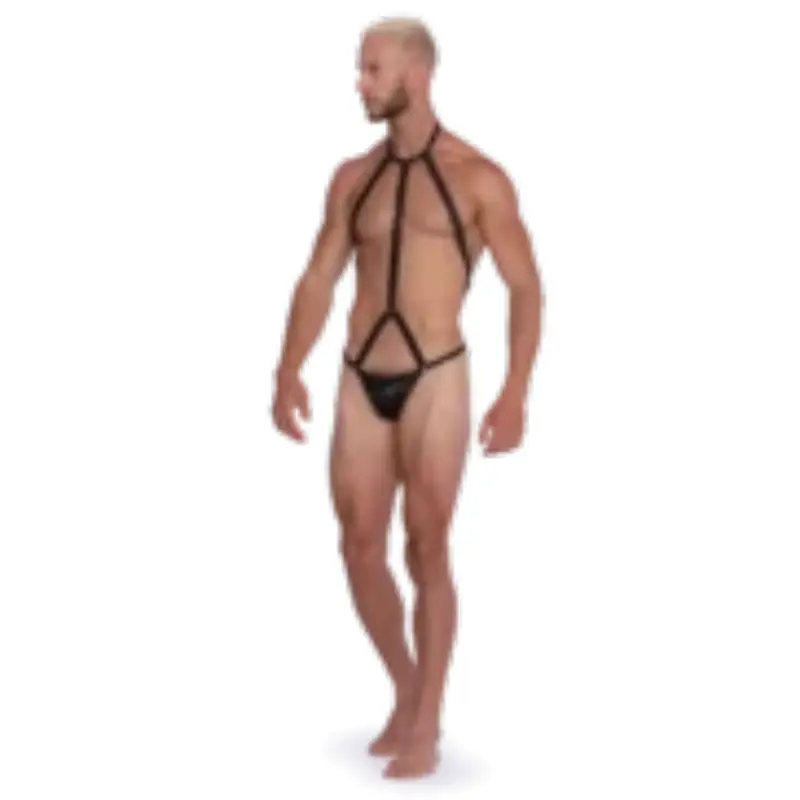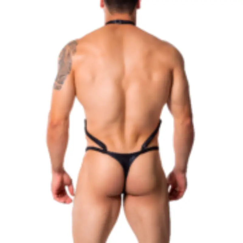 Tanga con Arnés elaborada en tela unicolor con acabado metalizado; su copa da forma al genital y realza el atributo, los glúteos están descubierto complemente, desde la cadera a la entrepierna se ajusta para dar forma, la cadera la define un cordón delgado que forma al arnés que desde el cuello hasta la cadera destaca el cuerpo; una prenda para momentos muy calientes, eróticos y sucios, esta prenda de ver un hombre rudo y que disfruta el sexo sin límites. Lo más importante es que siempre vas a calentar cuando llevas puesto PALI. Este tipo de prenda es un producto delicado por lo tanto debes tener en cuenta las instrucciones de lavado y de uso por ser lencería, a fin de conservar en buen estado la prenda